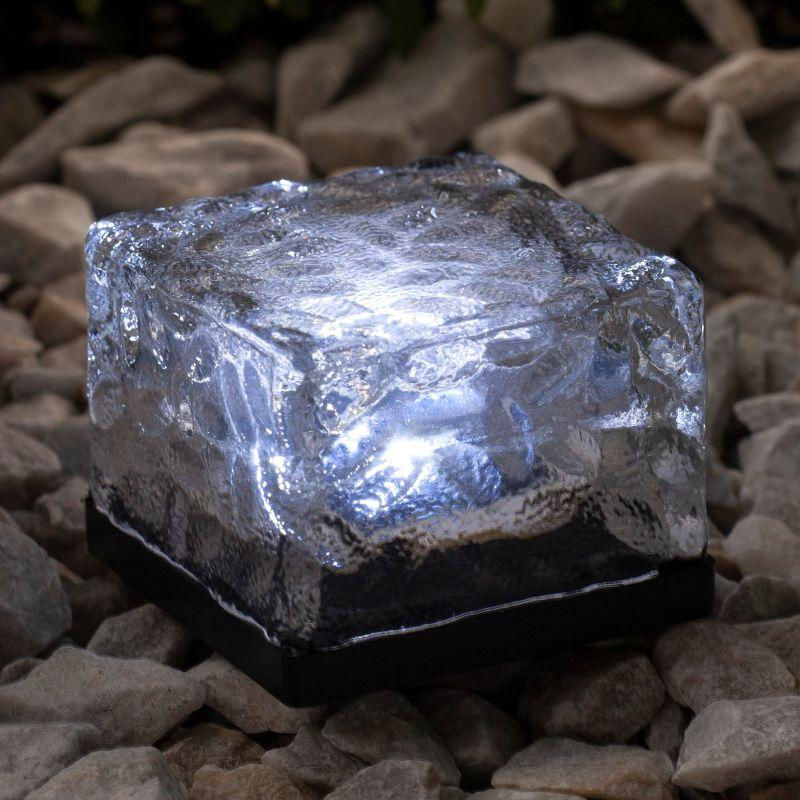 Уличный садовый светильник ERASF024-20 Ледяной куб предназначен для подсветки растений в саду, декоративного прудика, аллеи или входа в дом. Особенно эффектно подсветка смотрится в ступеньках или парковых дорожках. Модель имеет габариты 8х8х7 см и с легкостью устанавливается в землю. Комплект состоит из одного кубика. Садовый светильник работает на солнечной батарее. Такой тип получения энергии является самым экологичным, энергоемким, а также бесшумным. Питание происходит во включенном режиме, днем.