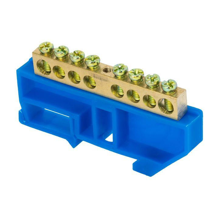 Шина нулевая N 6х9 8 отвер. латунь син. изолятор на DIN-рейку PROxima EKF sn0-63-08-d