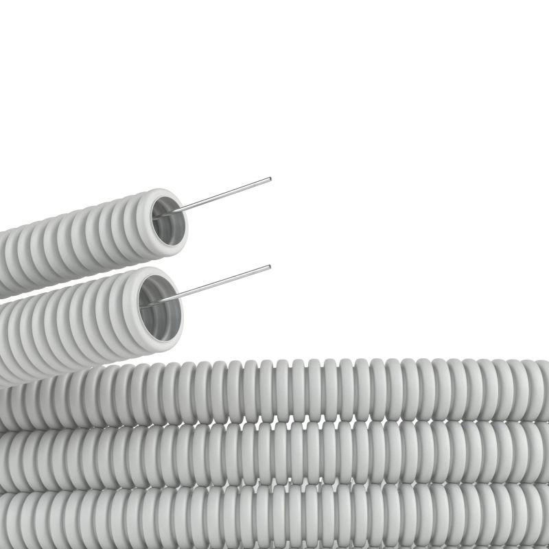 Труба гофрированная ПВХ гибкая легкая d25мм с протяжкой сер. (уп.50м) DKC 91925