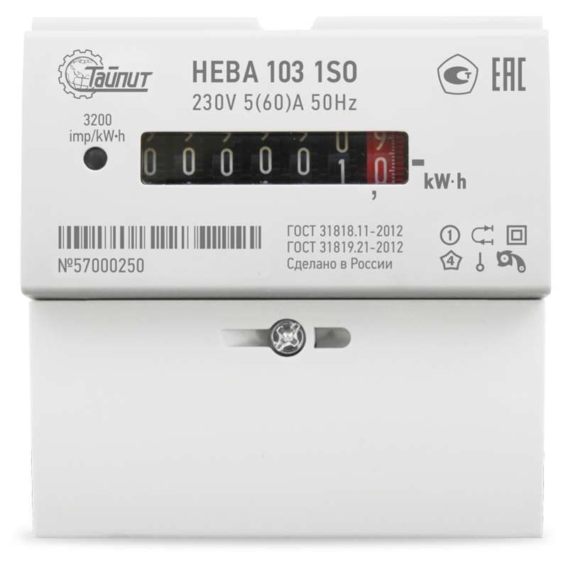 Счетчик НЕВА 103 1S0 1ф 5-60А 220В 1 класс точн. 1 тариф DIN-рейка Тайпит 6121129