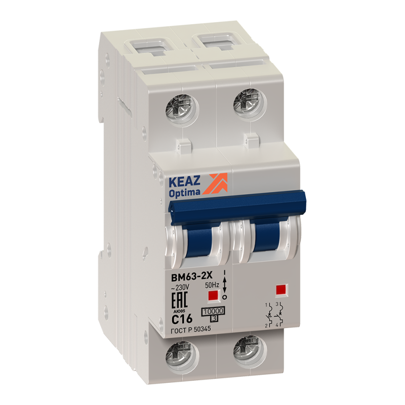 Выключатель автоматический модульный 2п C 32А 6кА OptiDin BM63-2C32-УХЛ3 КЭАЗ 260604