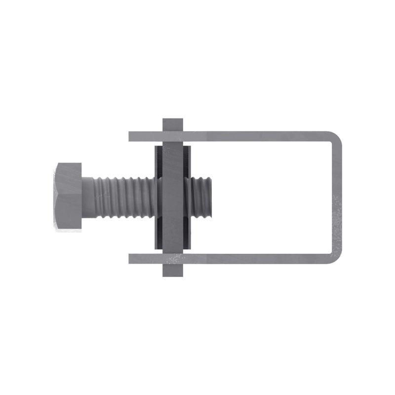 Скоба-держатель полосы с болтом используется для крепления полосы шириной до 50 мм к фасаду и внутренним стенам. Материал - горячеоцинкованная сталь.