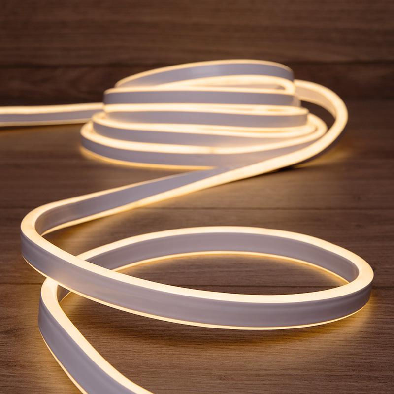 Двухсторонний гибкий неон SMD 8х 16 мм представляет собой шнур, выполненный из полимерной трубки с матовой поверхностью, внутри которого находится светодиодная лента. В пяти метрах изделия умещаются 600 ярких диодов, излучающих теплый белый свет. В комплект входит все необходимое для подключения. Гибкий неон — это готовое решение для создания декоративной, акцентной подсветки помещений, которое не требует особых навыков для осуществления монтажа. Двухсторонняя лента эффектно смотрится в нишах, гардинах, оконных и дверных проемах, различных мебельных элементах.